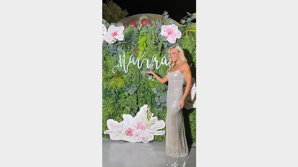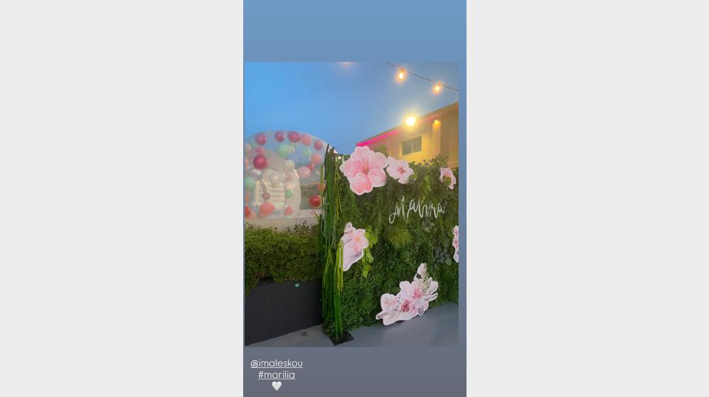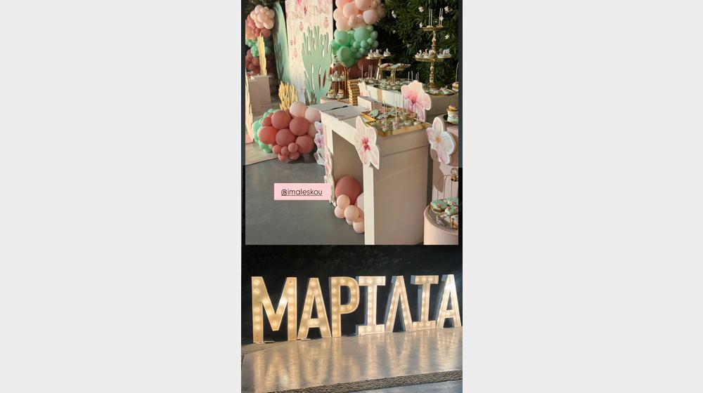 H όλη διακόσμηση του χώρου ήταν άκρως εντυπωσιακή, μιας και υπήρχαν στολισμένα μπαλόνια σε ροζ, λευκό και πράσινο χρώμα, καθώς και μεγάλη φωτιζόμενη επιγραφή του ονόματος της μικρής.