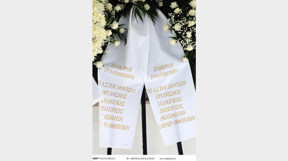 Η οικογένειά του, αντί στεφάνων, παρακαλεί όσους το επιθυμούν να ενισχύσουν το έργο του ΤΑΣΕΗ (Ταμείο Αλληλοβοήθειας Σωματείου Ελλήνων Ηθοποιών). Δείτε στην πιο κάτω gallery τις σχετικές εικόνες:
