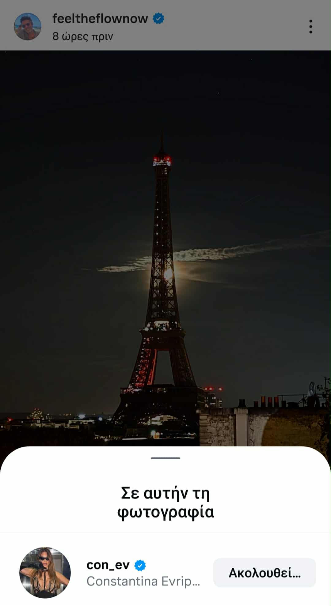 Η Κύπρια παρουσιάστρια και ραδιοφωνική παραγωγός, μέσα από post που πραγματοποιήσε στον λογαριασμό της στο instagram, το βράδυ της Δευτέρας, 1ης Οκτωβρίου, και φωτογραφίζοντς τον Πύργο του Άιφελ, φρόντισε να αφήσει σε tag τον αγαπημένο της, Φίλιππο Μιχόπουλο, δήλωντάς μας έτσι, πως το ζευγάρι βρίσκεται μαζί στην Πόλη του Φωτός.