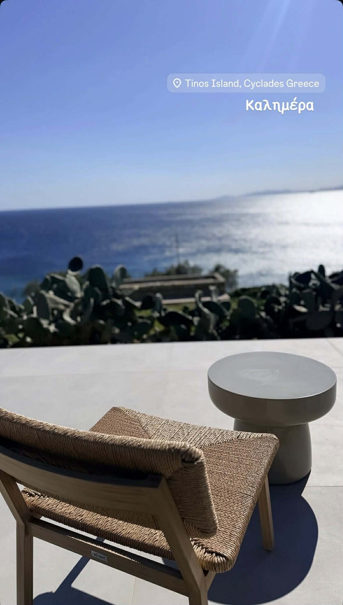 Σε φωτογραφίες που δημοσίευσαν, φαίνονται να απολαμβάνουν το γαλάζιο της θάλασσας, με φόντο το κυκλαδίτικο τοπίο.