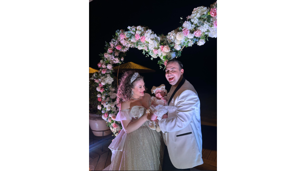 Δεν θα μπορούσε να απουσιάζει από το πάρτι του έρωτά τους, η κόρη τους Ιωάννα — Μελωδία, η οποία βρισκόταν στην αγκαλιά των γονιών της, όσο όλοι μαζί φωτογραφίζονταν στη λουλουδένια αψίδα καρδιάς. Δείτε φωτογραφικό υλικό στη gallery πιο κάτω, όπως επίσης και το βίντεο: