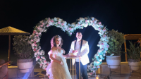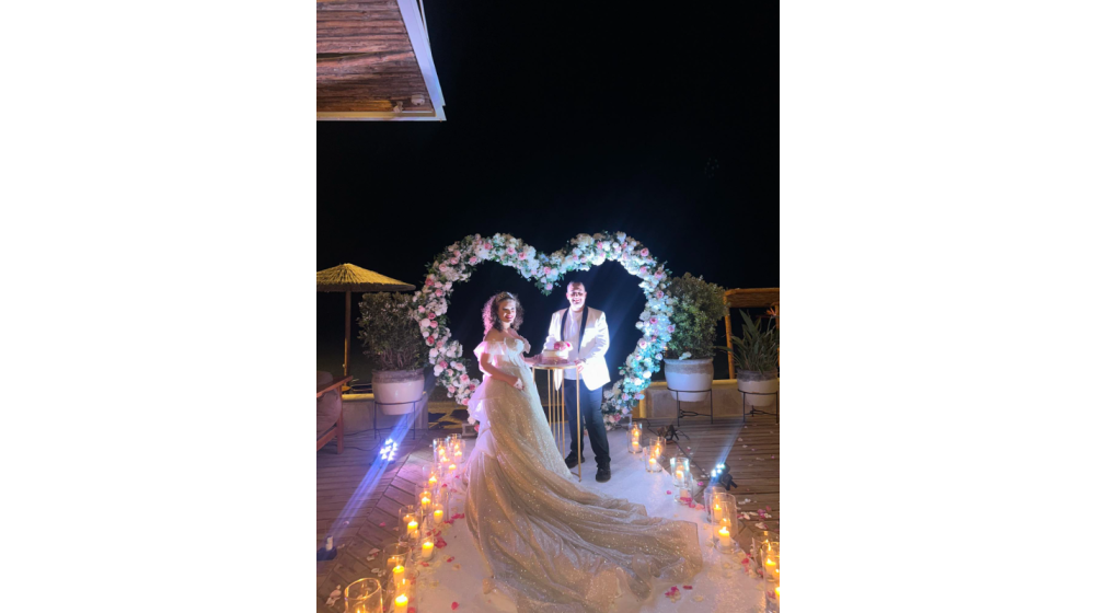 Τα βεγγαλικά, η αψίδα καρδιάς, η τούρτα και το νυφικό, στα highlights της όλης βραδιάς.