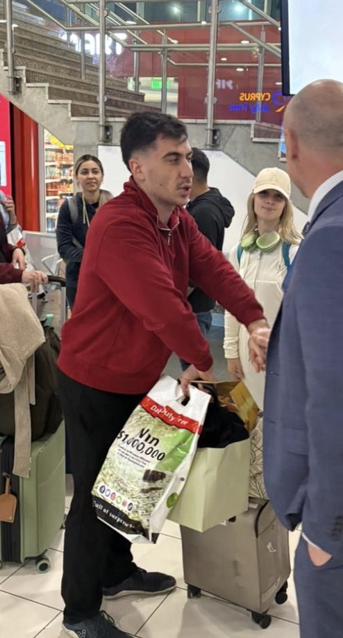 Δεκάδες Κύπριοι επιβάτες μόλις έφθασαν από το Dubai και ανάμεσα τους ήταν και η Στυλιάνα Αβερκίου. Εκεί την περίμενε ο ο σύντροφος της Φειδίας Παναγιώτου ο οποίος την αγκάλιασε σφιχτά.