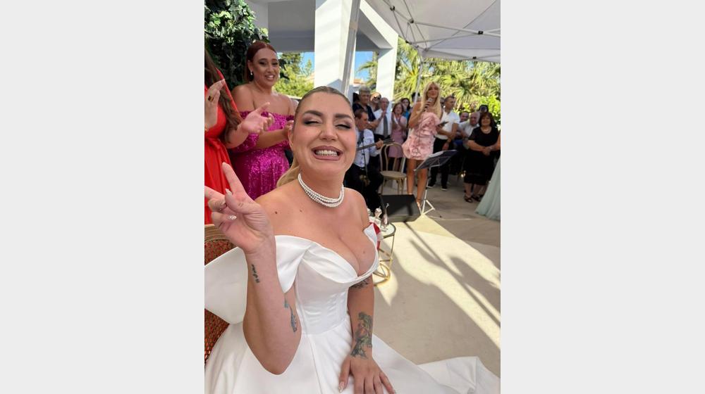 Το ζευγάρι το οποίο έχει αποκτήσει μία κόρη, την 2 ετών Αριάνα, παντρεύτηκε στη Λευκωσία νωρίτερα σήμερα τηρώντας τα έθιμα του γάμου. Η νύφη συγκινημένη πραγματοποίησε παραδοσιακά αλλάματα σε φιλικό και οικογενειακό κύκλο.