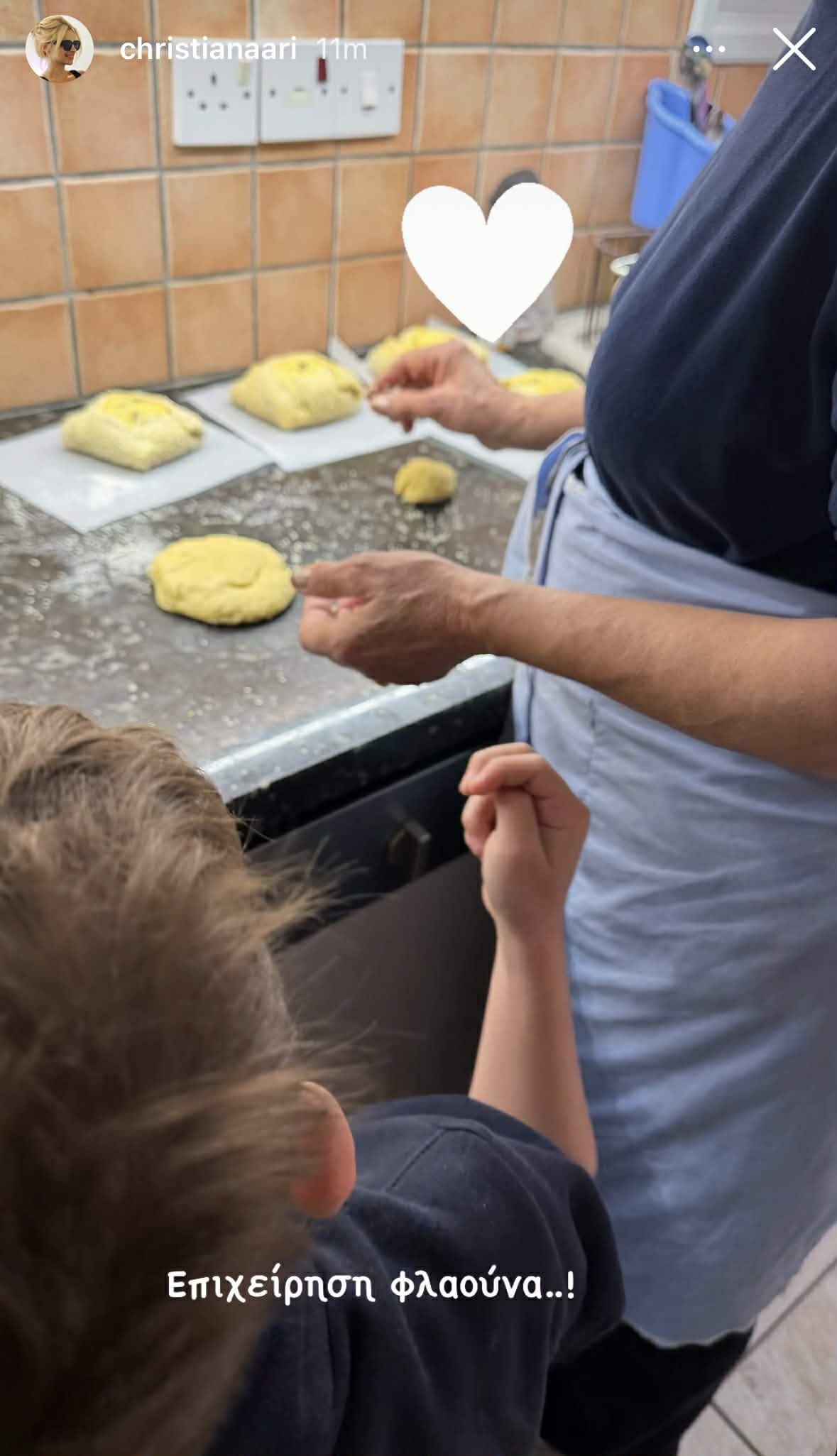 Μία εξ αυτών και η Χριστιάνα Αριστοτέλους, την οποία εντοπίσαμε μέσα από δική της ανάρτηση στο instagram να φτιάχνει φλαούνες με τον γιο της, Ανδρέα και τη γιαγιά. Οι φλαούνες είναι ένα από τα πιο χαρακτηριστικά παραδοσιακά εδέσματα των ημερών.