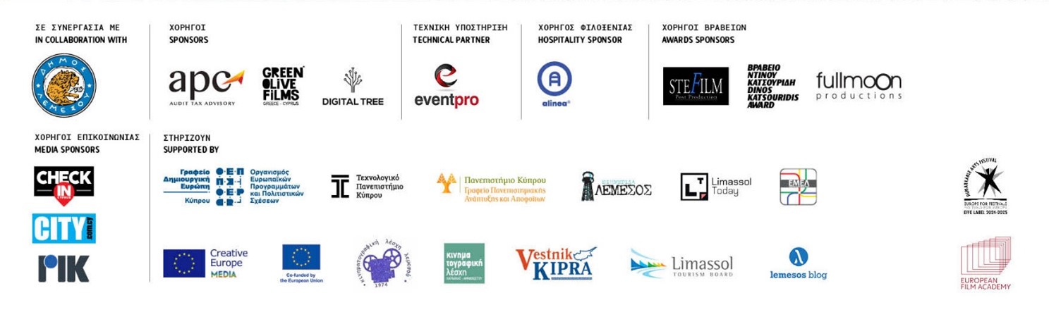 Στηρίζουν: Οργανισμός Ευρωπαϊκών Προγραμμάτων και Πολιτιστικών σχέσεων, ΤΕΠΑΚ, Γραφείο Αποφοίτων Πανεπιστημίου Κύπρου, Εφημερίδα Λεμεσός, Κινηματογραφική Λέσχη Λεμεσού, Κινηματογραφική Λέσχη Λάρνακας - Αμμοχώστου, Limassol Today, Lemesos Blog, Εταιρεία Μεταφοράς Επιβατών Λεμεσού, Vestnik Kipra, Εταιρεία Τουριστικής Ανάπτυξης Λεμεσού.