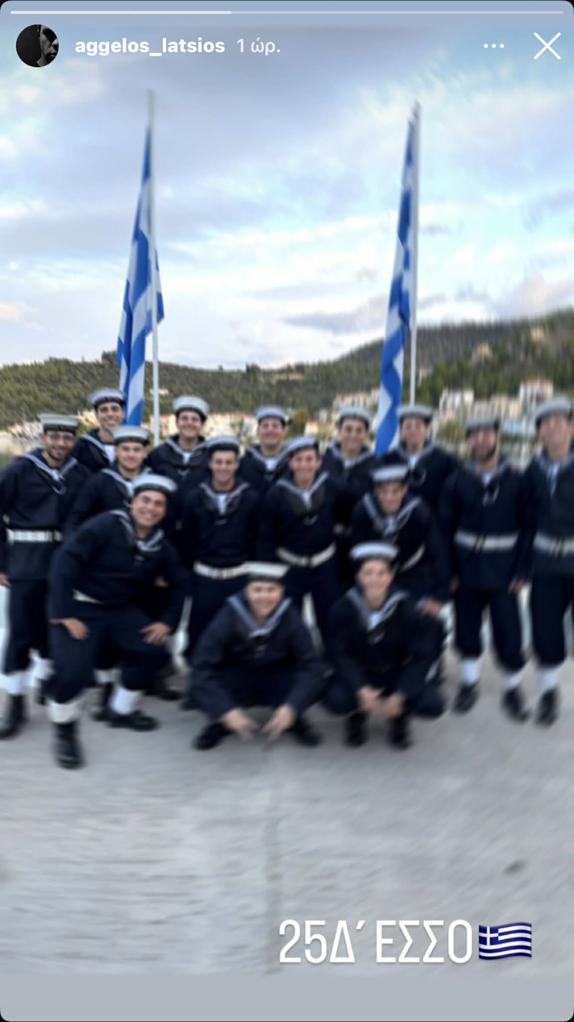 Στο κάτω μέρος του story ο ίδιος, έγραψε: «25 Δ’ ΕΣΣΟ», ενημερώνοντας το κοινό του την υπηρεσία στην οποία βρίσκεται.