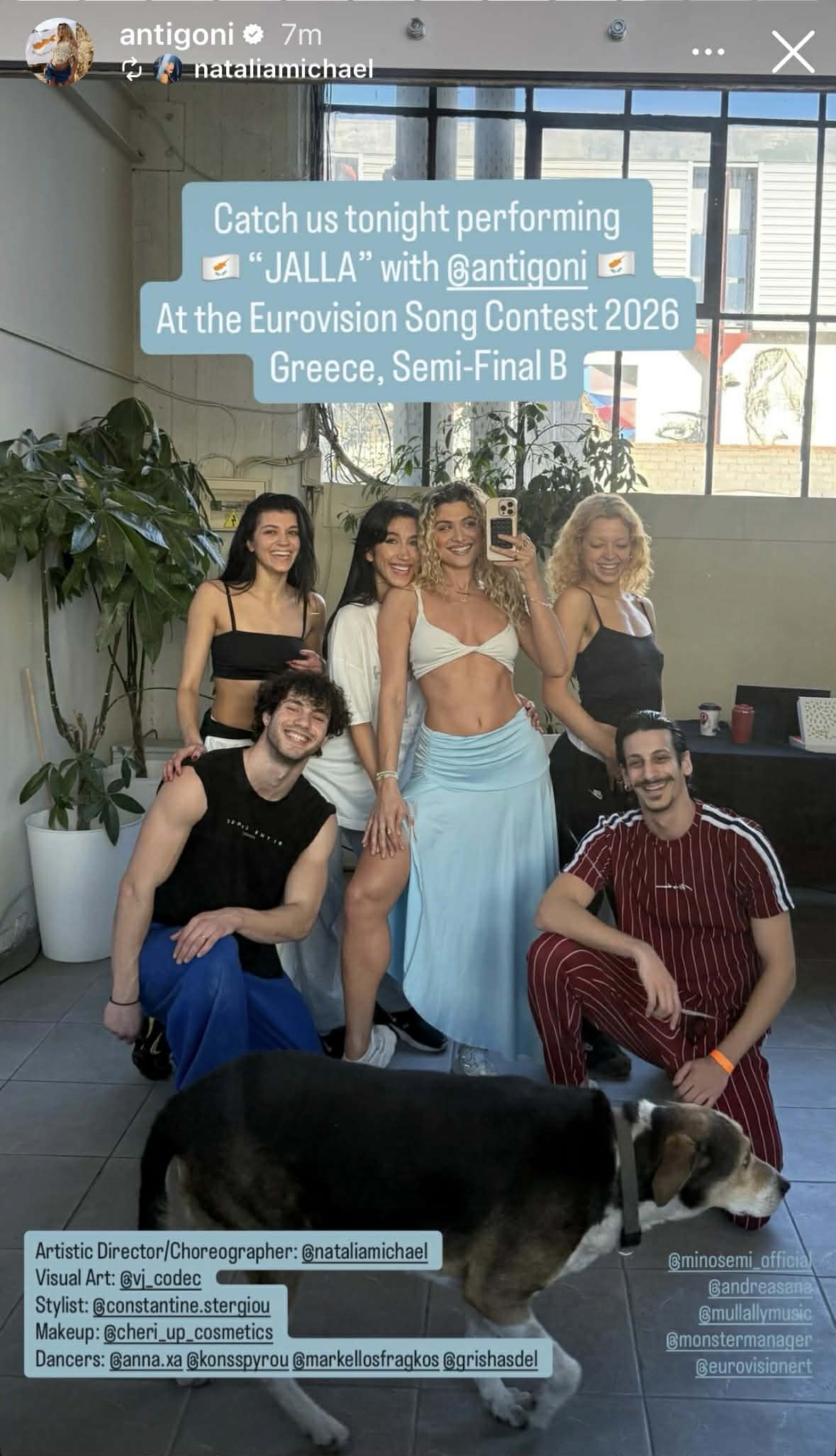 Η νεαρή τραγουδίστρια αναδημοσίευσε στον προσωπικό της λογαριασμό στο instagram ένα στιγμιότυπο από τις πρόβες για την αποψινή της εμφάνιση στο stage, ποζάροντας με τους συνεργάτες της και δηλώνοντας έτοιμη και ενθουσιασμένη. Δείτε πιο κάτω το σχετικό στιγμιότυπο: