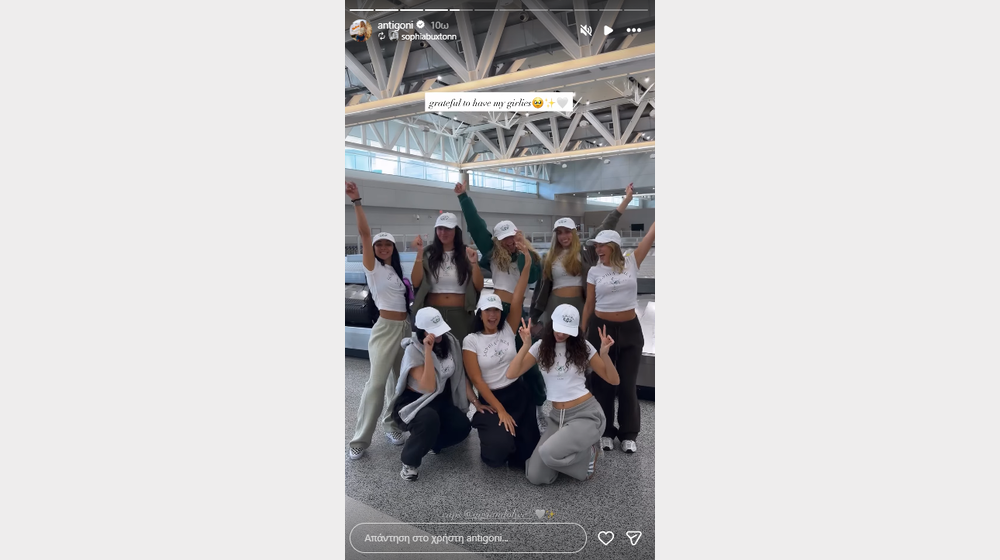 Συγκεκριμένα, στα instastories που δημοσίευσε η τραγουδίστρια, βλέπουμε την κοριτσοπαρέα σε στιγμιότυπά τους από το αεροδρόμιο καθώς επίσης και από τις εξορμήσεις τους στις παραλίες του νησιού.