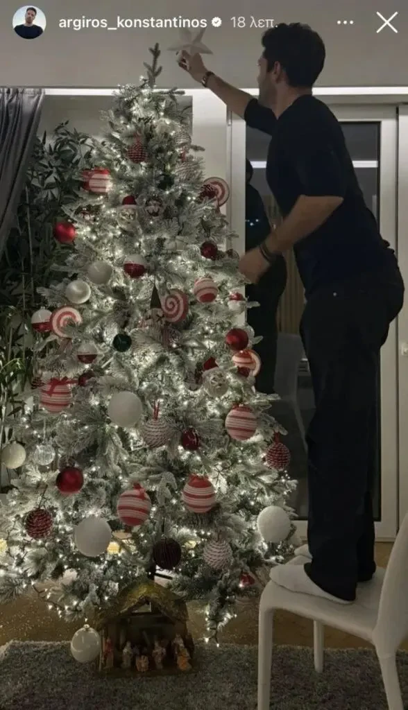 Ένα όμορφο και γιορτινό στιγμιότυπο μοιράστηκε ο Κωνσταντίνος Αργυρός, χθες, Σάββατο, 13 Δεκεμβρίου, μέσα από τον προσωπικό του λογαριασμό στο instagram, στο οποίο μας δείχνει το εντυπωσιακά στολισμένο χριστουγεννιάτικο δέντρο του σπιτιού του.