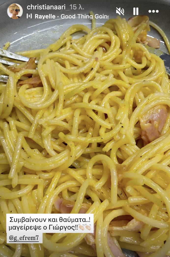 Ο Γιώργος Εφραίμ αποφάσισε το βράδυ της Πέμπτης 12 Μαρτίου να γίνει από τις σπάνιες φορές ο chef του σπιτιού του. Μαγείρεψε μακαρονάδα για τη σύζυγο του Χριστιάνα Αριστοτέλους και τα παιδιά τους Μελίνα και Ανδρέα.