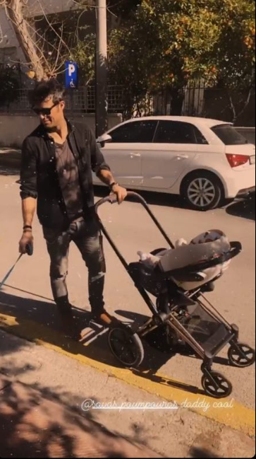 Ο παρουσιαστής όπως είδαμε και στις εικόνες δεν αφήνει λεπτό από τα μάτια του την κορούλα του, κρατώντας το καροτσάκι της μικρής ως "χαζομπαμπάς". Δείτε τις εικόνες που δημοσίευσαν: