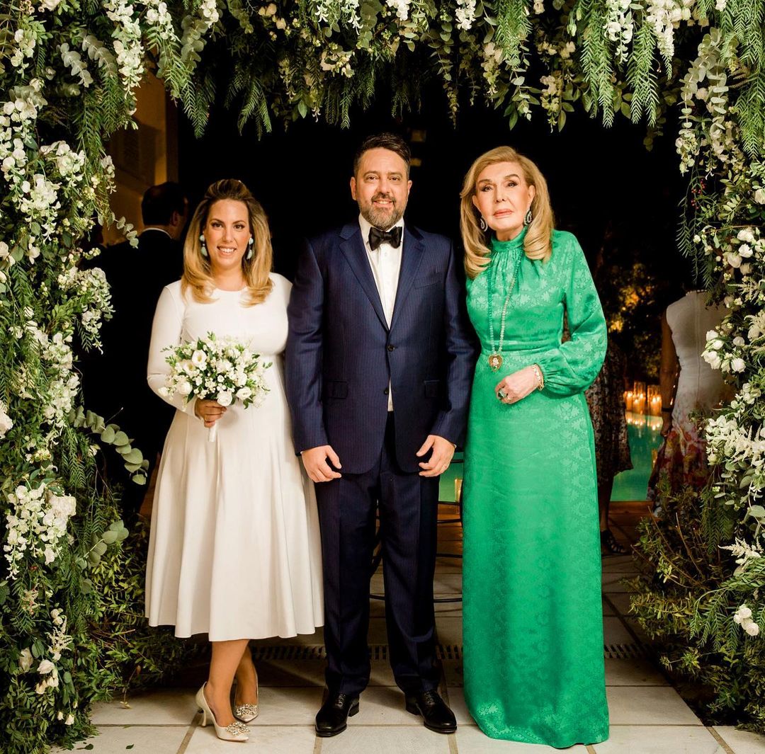 Πρόσφατα, η σχεδιάστρια ανέβασε τρεις φωτογραφίες από τον γάμο με τους φίλους, την οικογένειά της και την κουμπάρα της, Μαριάννα Β.Βαρδινογιάννη. Η νύφη είχε επιλέξει ένα υπέροχο midi φόρεμα σε στιλ 50s που έκρυβε την φουτσκωμένη της κοιλίτσα ενώ το είχε συνδυάσει με νυφικές γόβες διακοσμημένες με κρύσταλλα Swarovski.