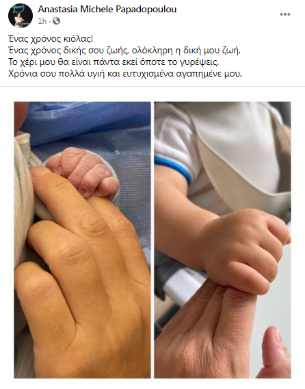 "Ένας χρόνος κιόλας! Ένας χρόνος δικής σου ζωής, ολόκληρη η δική μου ζωή. Το χέρι μου θα είναι πάντα εκεί όποτε το γυρέψεις. Χρόνια σου πολλά υγιή και ευτυχισμένα αγαπημένε μου" έγραψε για τα 1α γενέθλια του γιου της και πόσταρε δύο υπέροχες φωτογραφίες τους. Δείτε πιο κάτω: