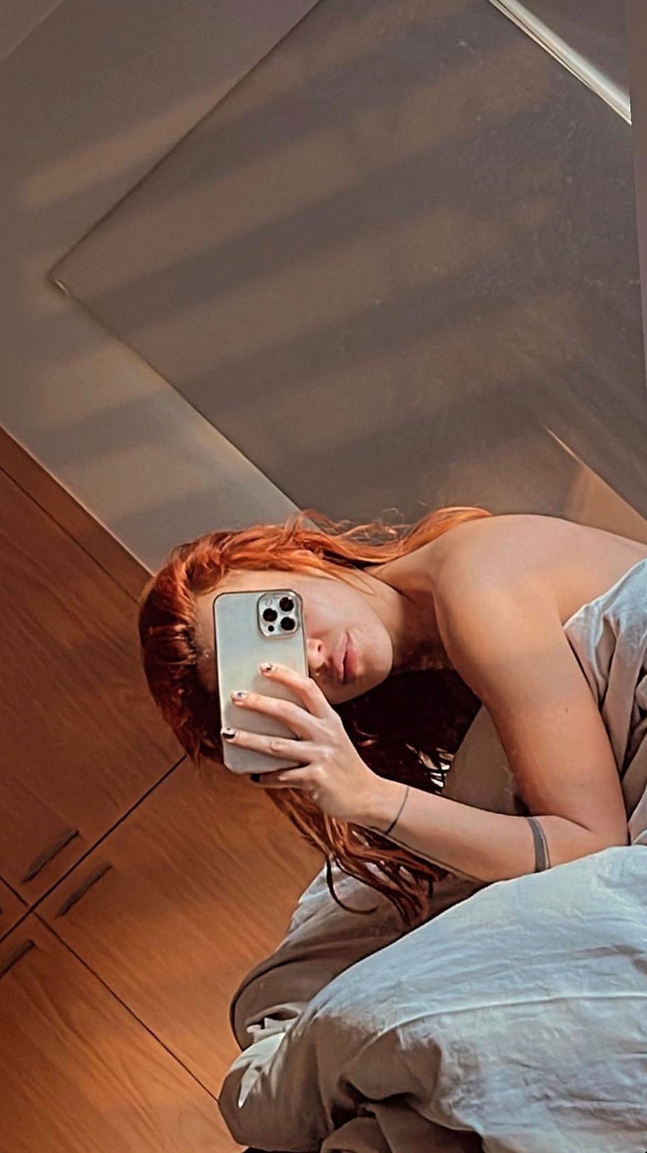 Στο στιγμιότυπο που μοιράστηκε τη βλέπουμε αγουροξυπνημένη να ποζάρει στον καθρέφτη του υπνοδωματίου φορώντας μόνο… την κουβέρτα της. Δείτε πιο κάτω τη σχετική εικόνα που εντοπίσαμε στα social media: