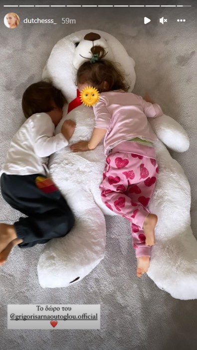 Έτσι παίρνοντας τον σπίτι της, η Δούκισσα Νομικού, έβγαλε φωτογραφία τα παιδιά της, να τον έχουν αγκαλιά, δείχνοντας το πόσο έχουν ευχαριστηθεί το δώρο του Γρηγόρη Αρναούτογλου, με το γνωστό μοντέλο να αναρτά στον προσωπικό της λογαριασμό στο instagram, κάνοντας τον tag, τα πειστήρια. Δείτε πιο κάτω την εικόνα: