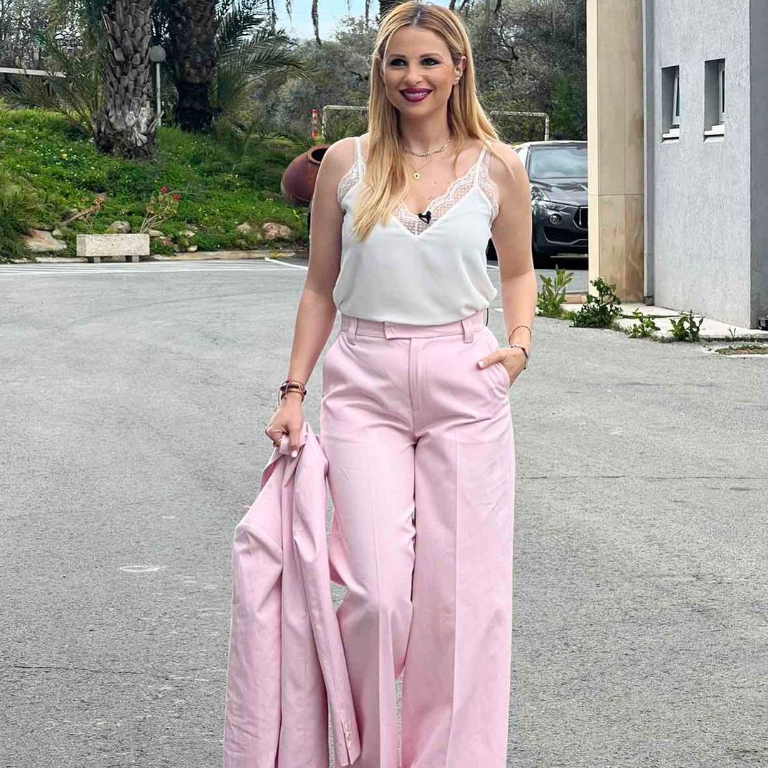 Η Χριστιάνα Αριστοτέλους φάνηκε να είναι τολμηρή καθώς μετά το τέλος της εκπομπής της, το απόγευμα της Τρίτης, 22 Μαρτίου, βγήκε στον υπαίθριο χώρο του καναλιού και πόζαρε με το outfit της, βγάζοντας μάλιστα το πάνω μέρος του baby pink κουστουμιού και μένοντας με το μπλουζάκι με λεπτή τιράντα.