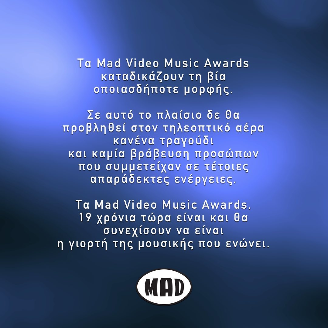 Ωστόσο το Mad σε απόφαση που πήρε μετέπειτα, απέκλεισε τις εμφανίσεις των εμπλεκόμενων και έτσι δεν θα προβληθεί καμία στους τηλεοπτικούς δέκτες, ούτε από τα live acts τους ούτε από τις βραβεύσεις τους.