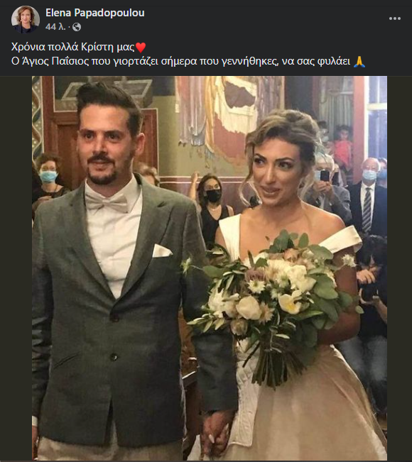 Συγκεκριμένα της έγραψε τα ακόλουθα: "Χρόνια πολλά Κρίστη μας.Ο Άγιος Παΐσιος που γιορτάζει σήμερα που γεννήθηκες, να σας φυλάει". Δείτε την εικόνα πιο κάτω: