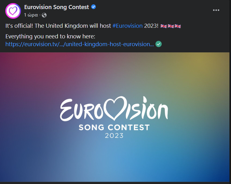 Να πούμε ωστόσο, πως η πόλη αλλά και οι ημερομηνίες δεν έχουν ακόμη αποφασιστεί ακόμη, υπολογιζόνται σε λίγους μήνες, ενώ η τελευταία φορά που η "Eurovision", φιλοξενήθηκε στο Ηνωμένο Βασίλειο ήταν το 1998, στο Birmingham.