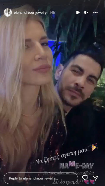 Η σύζυγός του, Έλενα Ανδρέου, επέλεξε να ευχηθεί στον εορτάζοντα μέσα από μια τρυφερή της ανάρτηση, που κοινοποίησε σε story της στο Instagram.