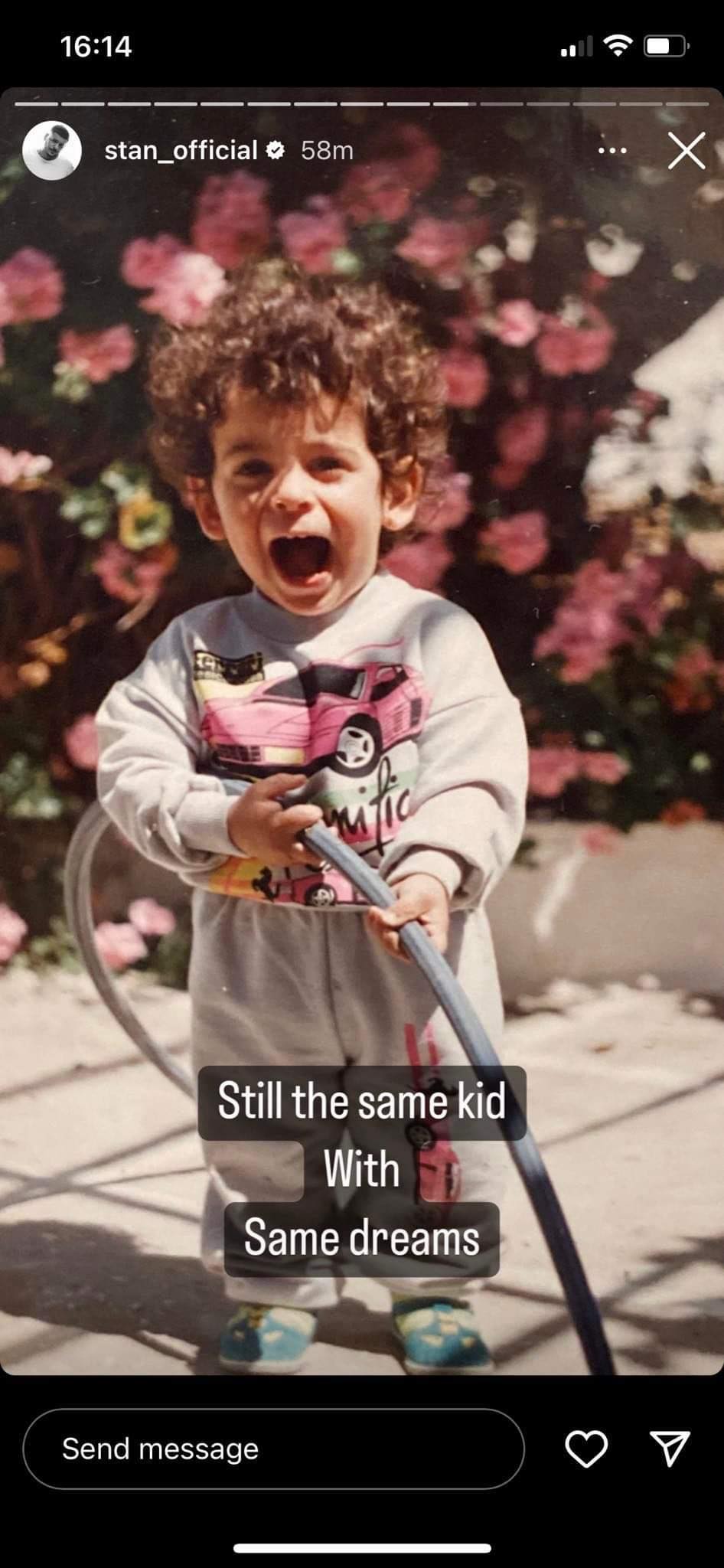 Συγκεκριμένα, καθώς βλέπουμε τον μικρό Σράτο Αντιπαριώτη να μας ποζάρει, ο μεγάλος Stan, σχολιάζει στην εικόνα που μοιράστηκε με τους ακόλουθούς του: “Παραμένω το ίδιο παιδί, με τα ίδια όνειρα". Δείτε την εικόνα πιο κάτω: