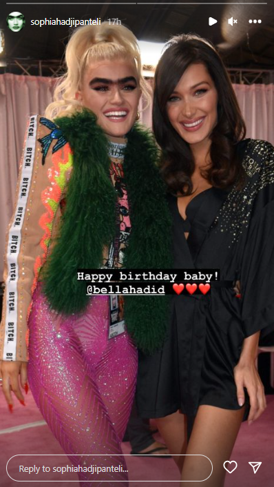Τη Σοφία Χατζηπαντελή να ποζάρει δίπλα στο παγκοσμίου φήμης μοντέλο, Bella Hadid, πετύχαμε στο instagram, χθες, Κυριακή, 9 Οκτωβρίου.