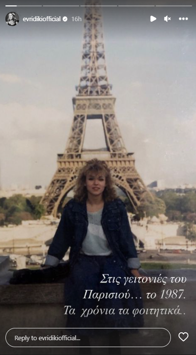 Συγκεκριμένα, την είδαμε να σχολιάζει με τα ακόλουθα τη σχετική πιο κάτω εικόνα: "Στις γειτονιές του Παρισιού, το 1987. Τα χρόνια τα φοιτητικά".