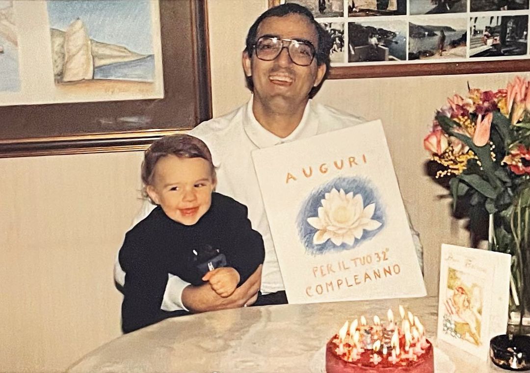 Συγκινητική ήταν και η λεζάντα που συνόδευσε την ανάρτησή του: “Σήμερα τα γενέθλια του πατέρα μου που θα γινόταν 76. Αυτή είναι ίσως η τελευταία μας φωτογραφία στα γενέθλια της μαμάς μου 16/2/91 που έκλεινε τα 32 στο σπίτι μας στο Παρίσι. Δυόμιση μήνες μετά έφυγε από τη ζωή από Λευχαιμία στα 44 του. Συνήθως δεν κάνω αναρτήσεις γι’ αυτόν θέλοντας να δείχνω μια πιο φωτεινή πλευρά μου (όπως σε αυτή την φωτογραφία) και να θάψω και εγώ αυτό το γεγονός που μας σημάδεψε για πάντα. Αλλά φέτος αποφάσισα να τον τιμήσω. Αμέτρητες φορές σκέφτηκα πως θα ήταν η ζωή μας μαζί του. Και οι 3 μας. Από αυτόν πήρα πολλά. Όλα μου τα ταλέντα μου, το πρόσωπο, το κορμί, το ύψος, το υπέροχο ονοματεπώνυμο, την καλοσύνη, το χαμόγελο και αλλά που σίγουρα δεν τα γνωρίζω. Όλοι μου λένε ιστορίες και για το πόσο καλός ήταν και εγώ στεναχωριέμαι τόσο πολύ που δεν τον θυμάμαι. Ανυπομονώ να τα πούμε από κοντά κάποια στιγμή αν όντως υπάρχει ο παράδεισος… Tanti Auguri Papà. Mille baci. 1/11/46 #giacomofilippoderrico 1/11/22”. Δείτε πιο κάτω τη σχετική εικόνα: