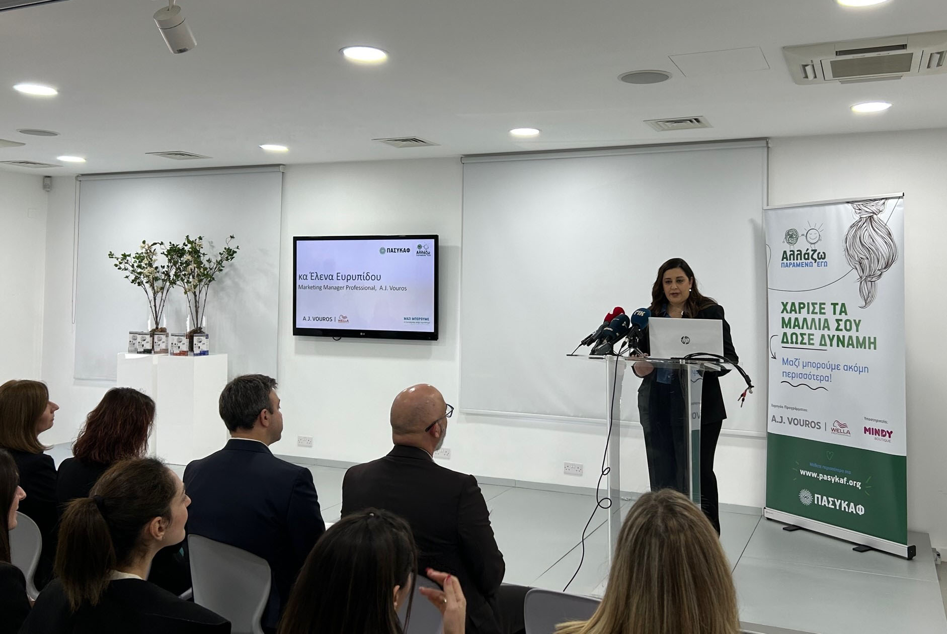 Η Αναπληρώτρια Εκτελεστική Διευθύντρια του ΠΑΣΥΚΑΦ, κα. Σόφη Χριστοφόρου καλωσόρισε τους προσκεκλημένους και τόνισε πως «είμαστε ιδιαίτερα χαρούμενοι για την επίσημη έναρξη του προγράμματος ‘Αλλάζω…ΠΑΡΑΜΕΝΩ ΕΓΩ’ και τη συνεργασία μας με την εταιρεία A.J. Vouros και τα προϊόντα WELLA. Το νέο πρόγραμμα εντάσσεται στις δράσεις της Υπηρεσίας Κοινωνικής Στήριξης του ΠΑΣΥΚΑΦ και η πρώτη φάση του προγράμματος περιλαμβάνει πρακτικές συμβουλές για θέματα απώλειας μαλλιών, δωρεά δανεισμό περούκας, συμβουλές για την περιποίηση και τη φροντίδας της, καθώς και τη συλλογή μαλλιών». Στη συνέχεια, ευχαρίστησε όλους τους συνεργάτες του προγράμματος, την εταιρεία Bergmann Kord, τη Mindy Boutique και τον κ. Ζαχαρία Ζαχαρίου, ιδιοκτήτη των κομμωτηρίων ZAC HAIR DESIGNERS.