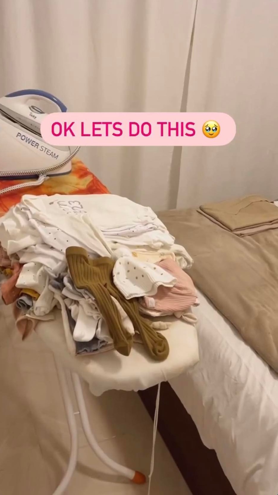 Σε story που μοιράστηκε στον προσωπικό της λογαριασμό στο instagram την είδαμε να σιδερώνει τα ρουχαλάκια της κόρης της δίνοντάς μας μία πρώτη γεύση στην cute γκαρνταρόμπα της μικρής της. Δείτε πιο κάτω το σχετικό στιγμιότυπο: