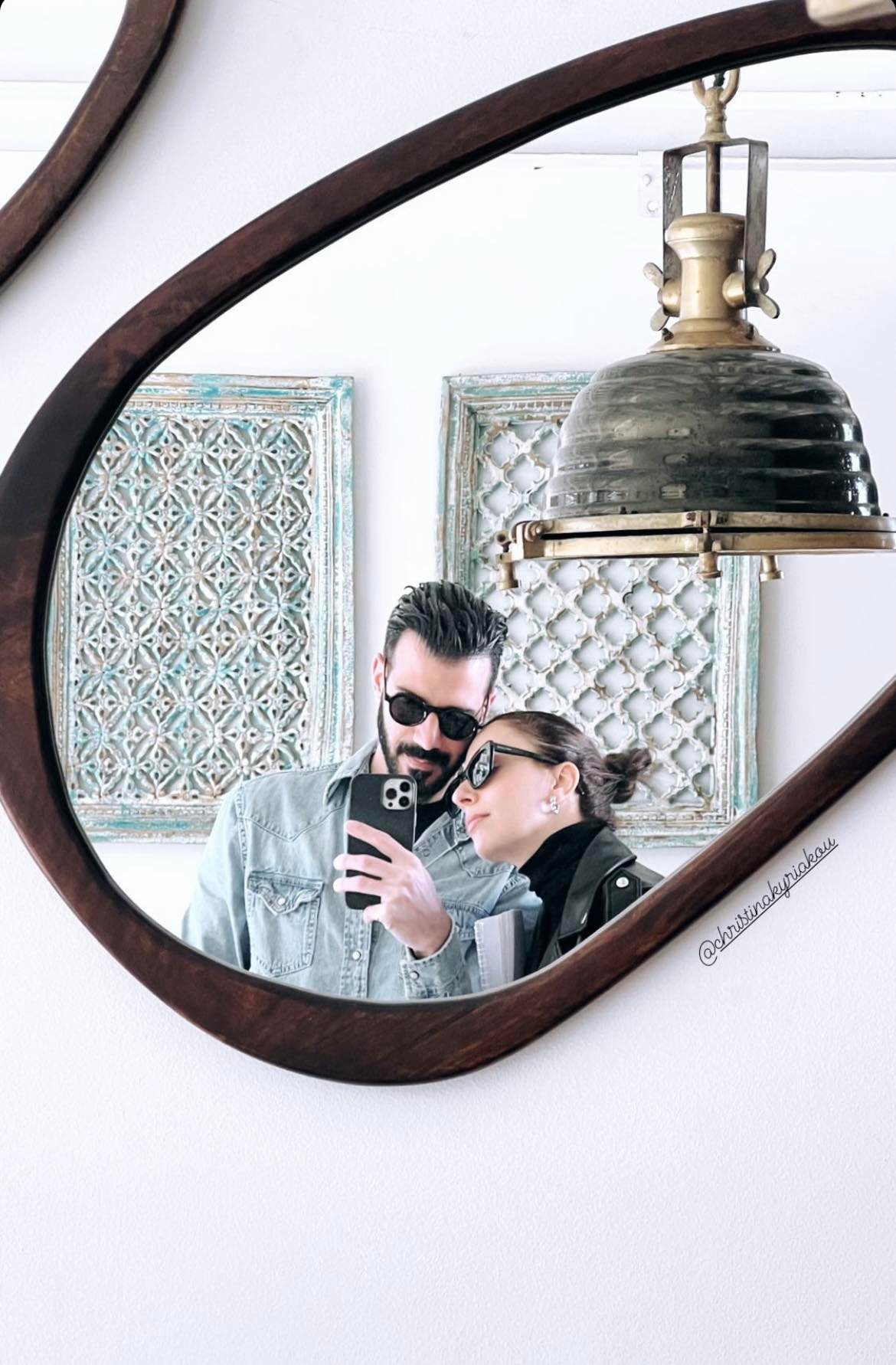 Ο σύντροφος της ηθοποιού, μοιράστηκε στον προσωπικό του λογαριασμό στο instagram ένα στιγμιότυπο όπου τους βλέπουμε να ποζάρουν κατά τη διάρκεια της κυριακάτικής τους βόλτας μπροστά από έναν ιδιαίτερο καθρέφτη και η καλλιτεχνική οπτική του φωτογράφου είναι εμφανής στη λήψη τους. Δείτε πιο κάτω το σχετικό στιγμιότυπο που εντοπίσαμε στα social media και λατρέψαμε: