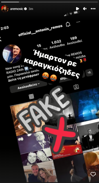 Συγκεκριμένα ο Έλληνας τραγουδιστής, ενημέρωσε με αγανάκτηση τους followers του στο instagram, πως κυκλοφορούν διάφορα fake profile με το όνομά του, με τον ίδιο να κάνει ένα ιδιαίτερο σχόλιο.