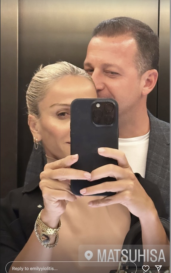 Φεύγοντας από το εστιατόριο και μπαίνοντας στο ασανσερ για να πάρει στο χώρο στάθμευσης μοιράστηκαν μαζί μας ένα τρυφερό στιγμιότυπο. Έβγαλαν μία selfie με τον Χρύσανθο να φιλάει την Έμιλυ τρυφερά στο κεφάλι. Δείτε την εικόνα πιο κάτω: