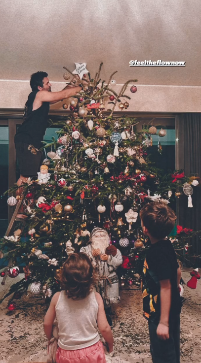 Συγκεκριμένα όπως θα δείτε και στην εικόνα πιο κάτω, ο Φίλιππος Μιχόπουλος τοποθετά το αστέρι στο πανύψηλο δέντρο τους, με τους Μάξιμο και Σιένα να παρακολοθούν την όλη διαδικασία.