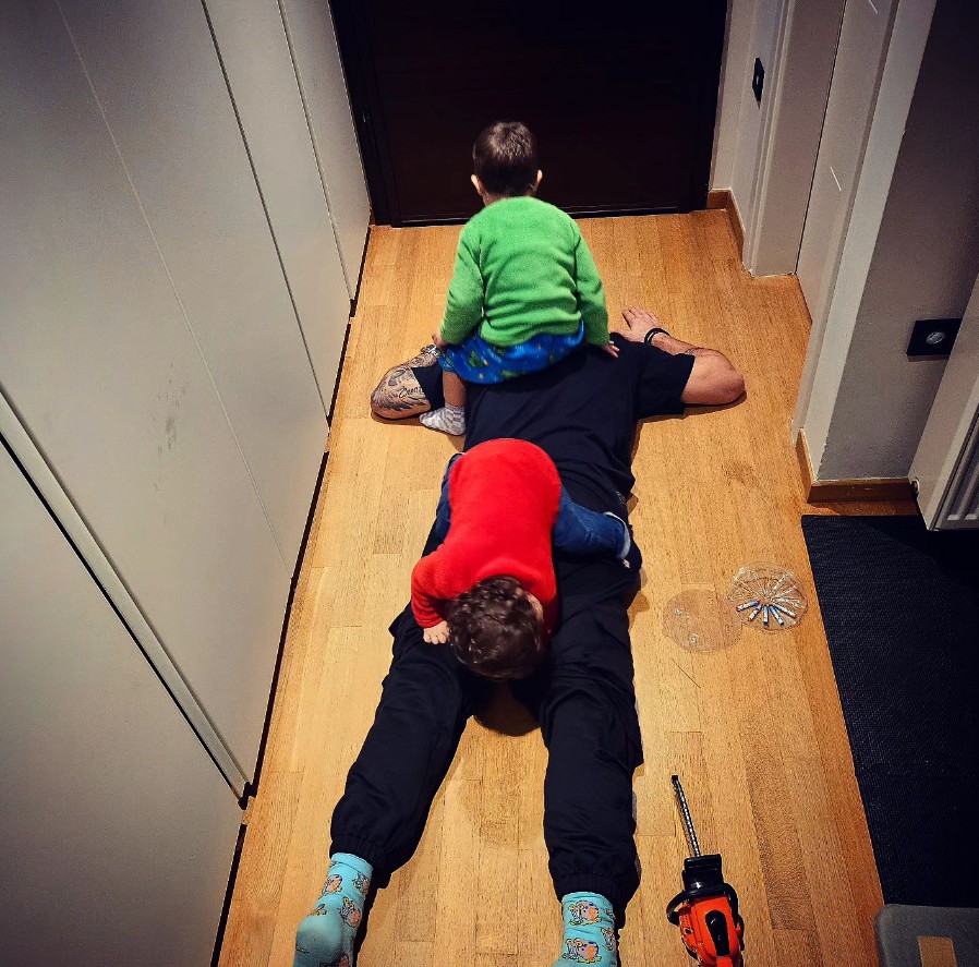 Ο γνωστός παρουσιαστής και σεφ δημοσίευσε μία χιουμοριστική φωτογραφία όταν πάει να φύγει από το σπίτι καθώς τα παιδιά του δεν τον αφήνουν. "Όταν ο μπαμπάς πάει να φύγει το jiu jitsu ξεκινάει... , κρατσ κρουτσ το τρένο περνά, κρατσ κρουτσ τα κόκκαλα του μπαμπά! #fatalitymortalkombat" έγραψε. Δείτε πιο κάτω την εικόνα: