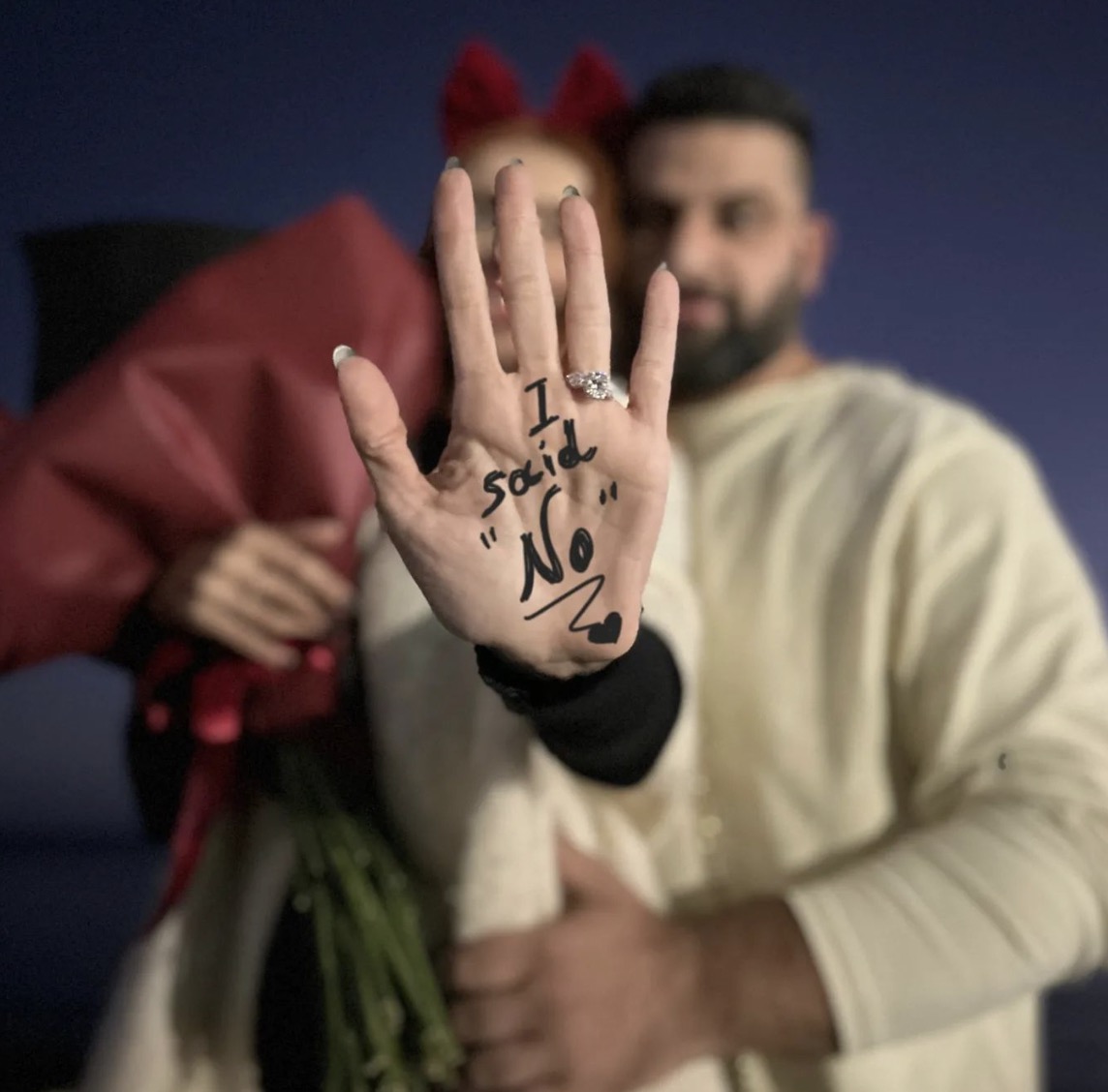 Μόνο που η ηθοποιός απάντησε "όχι" και δείτε τι γλυκιά εξήγηση που έδωσε. "Έκανε την ερώτηση, πήρε την απάντηση!! Θέλεις να με παντρευτείς; Όχι!!! Όχι δεν θέλω να σε παντρευτώ...Θέλω να παντρευτουμε!! Μεγάλη διαφορά για όσους την καταλαβαίνουν...Θέλω να παντρευτουμε γιατί θέλω όλα να τα κάνουμε μαζί... θέλω ΌΛΑ να είμαστε ΜΑΖΙ... όχι δεν θέλω να σε παντρευτώ, θέλω να παντρευτουμε...! Αναρχική η σχέση μας....αναρχική και η απάντηση... Μαζί σε όλα λοιπόν...ΜΑΖΊ ΣΕ ΌΛΑ...! 5 χρόνια μαζί και η απάντηση ήταν από τη πρώτη μέρα...ΜΑΖΙ..." έγραψε. Δείτε πιο κάτω τις εικόνες: