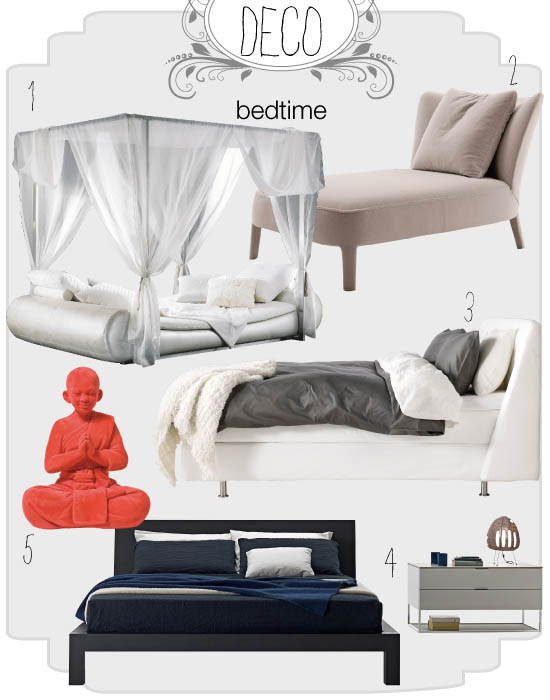 1. Κρεβάτι, Home & Deco / 2. Πολυθρόνα Febo της Maxalto, Rooms / 3. Κρεβάτι, ΙΚΕΑ / 4. Κρεβάτι Levante της Molteni & C, Venere group / 5. Διακοσμητικό, Kare