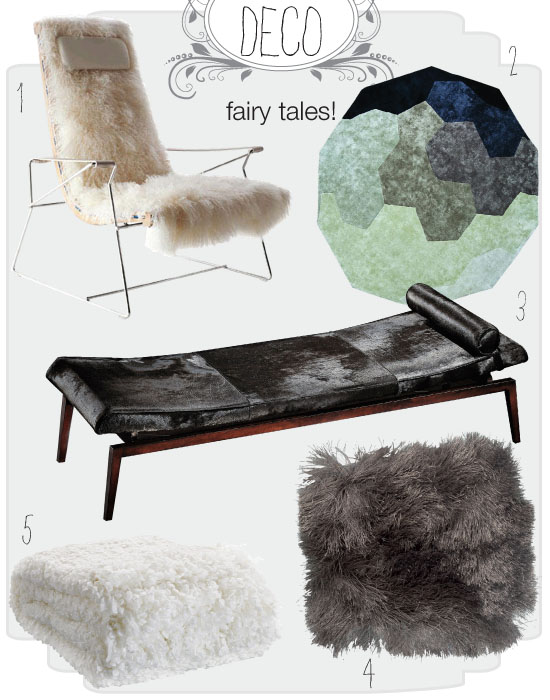 1. Πολυθρόνα JJ της B&B Italia, Rooms / 2. Χαλί Facette, Roche Bobois / 3. Ανάκλιντρο Anemone, Home & Deco / 4. Χαλί του οίκου Angelo, Living / 5. Κουβέρτα, ΙΚΕΑ