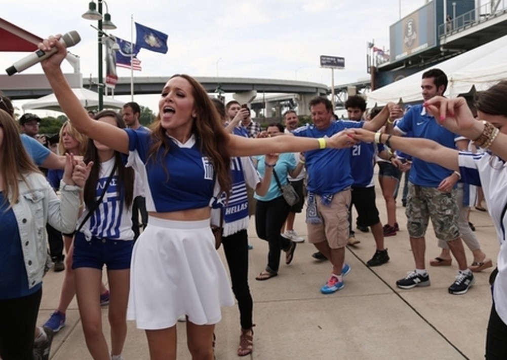 Στο PPL stadium στην Φιλαδέλφια για τον πρώτο φιλικό αγώνα της Εθνικής Ελλάδος με τη Νιγηρία. Εκεί υπήρχε και μια μικρή γιορτή όπου η Καλομοίρα τραγούδησε τον Εθνικό Ύμνο. Την ώρα όμως που τραγουδούσε έκανε ένα μικρό λαθάκι και αντί να πει "χαίρε ω χαίρε λευτεριά", είπε "χαίρε - χαίρε λευτεριά".