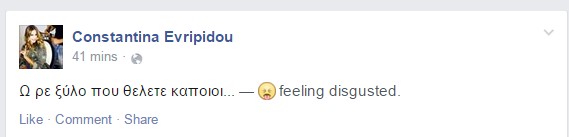 Από χθες επικρατεί μεγάλος ντόρος με τα δημοσιεύματα που θέλουν το νυφικό που φόρεσε η Κωνσταντίνα Ευριπίδου στο γάμο της με το Νεκτάριο Αλεξάνδρου στη Μύκονο να είναι πιστή αντιγραφή νυφικού φορέματος από ξένο site! Η ίδια πριν από λίγο ανέβασε στην προσωπική της σελίδα στο facebook ότι νιώθει αηδιασμένη και ότι κάποιοι θέλουν ξύλο. Η ίδια μπορεί να μην αναφέρθηκε ευθέως σε αυτό το ζήτημα ωστόσο τα σχόλια από τους φίλους της παρέπεμπαν σε αυτό το ζήτημα!