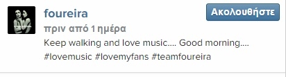 Όλοι τον τελευταίο καιρό ασχολούνται με την προσωπική της ζωή, τον χωρισμό της από τον Γιώργο Σαμαρά αλλά και την νέα φημολογούμενη σχέση. Τα σενάρια; Πολλά. Ποιος χώρισε ποιον, αν απάτησε κάποιος τον άλλο κτλ. Η Ελένη Φουρέιρα κλείνει τα αυτιά της σε όλα αυτά και με μια ανάρτησή της στον προσωπικό της λογαριασμό στο facebook κάτω από μια φωτογραφία που ανέβασε σχολίασε απλά «Keep walking and love music» που σημαίνει «συνεχίζω να προχωρώ και να αγαπώ την μουσική».