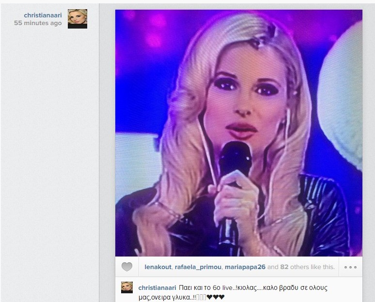 To 6o live του" Dansing for you" τελείωσε και η Χριστιάνα Αριστοτέλους λίγη ώρα αργότερα πριν πάει για ύπνο έστειλε την δικιά της καληνύχτα απο τον προσωπικό λογαριασμό της στο instagram στους διαδικτυακούς της φίλους «Παει και το 6ο live..! Kιολας....καλο βραδυ σε ολους μας,ονειρα γλυκα..!!». Βλέπετε η Χριστιάνα άρχισε να ασχολείται εντατικά με τα social media παρόλο που δηλώνει άσχετη με αυτά.