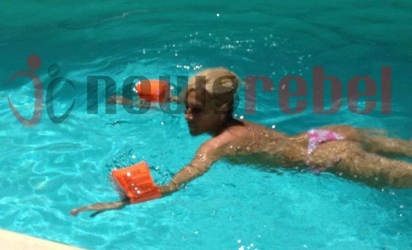 Η γνωστή για τις λαϊκές επιτυχίες της τραγουδίστρια, Έφη Σαρρή, συνελήφθη από το φακό του newsrebel.gr να απολαμβάνει στιγμές χαλάρωσης και ξεγνοιασιάς σε πισίνα, φορώντας μόνο το κάτω μέρος του μαγιό της. Εκεί όπως που το σκηνικό θα ήταν ιδιαίτερα sexy, έρχονται τα… μπρατσάκια, που όσο και να θέλει κανείς να εστιάσει στο όμορφο γυμνό θέαμα, δυστυχώς αποπροσανατολίζεται και βλέπει μόνο αυτά. Μα γιατί δεν βρέθηκε ένας χριστιανός να της μάθει κολύμπι τόσα χρόνια; Κάλιο αργά όμως παρά ποτέ και ίσως η Έφη μας να πρέπει να πάρει ταχύρρυθμα μαθήματα κολύμβησης.