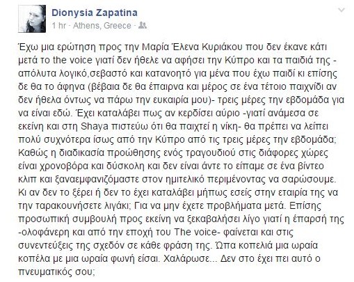 Φαίνεται ότι η Μαρία Έλενα Κυριάκου αρέσει και για αυτό και απασχολεί τόσο πολύ τα ελληνικά media! Διεθύντρια μεγάλου διαδικτυακού μέσου της Ελλάδας σήμερα με ένα post της αναφέρθηκε με όχι και τόσο κολακευτικά σχόλια για την δικιά μας Μαρία Έλενα και φαίνεται πως αυτό ενόχλησε επώνυμους Κύπριους που φρόντισαν να υπερασπιστούν την τραγουδίστρια. Διαβάστε τις έγραψε η διευθύντρια του site αλλά και η Μαρία Θεοδότου για αυτά τα σχόλιά της.