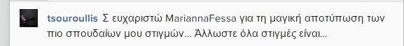 Πρόκειται για ένα υπέροχο κολάζ από φωτογραφίες, σε διάφορες ηλικίες κατά το μεγάλωμα του γιου του και όπως ο ίδιος ο παρουσιαστής έγραψε στη λεζάντα που συνόδευσε τη φωτογραφία πρόκειται για “την μαγική αποτύπωση των πιο σπουδαίων του στιγμών”. Η φωτογραφία είναι μία ομορφη κίνηση που έκανε για αυτόν μία πολύ καλή του φίλη, η Μαριάννα Φεσσά με αφορμή την ονομαστική γιορτή του Χρύσανθου Τσουρούλλη, ο οποίος θέλησε με την δημοσιοποίησή της να την ευχαριστήσει.