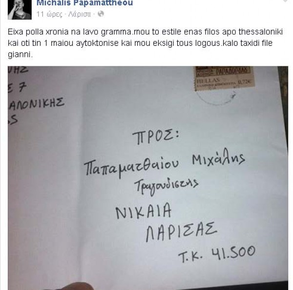 Μία συγκλονιστική ιστορία αποκάλυψε μέσω του προσωπικού του λογαριασμού στο facebook ο γνωστός Λαρισαίος τραγουδιστής Μιχάλης Παπαματθαίου.