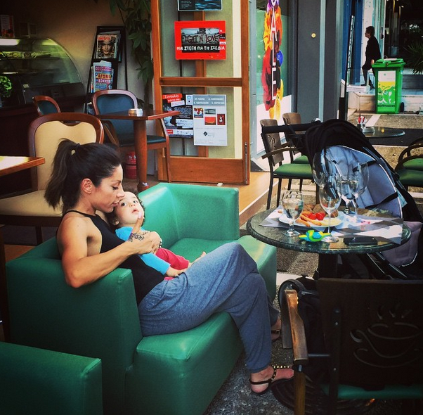 Η τραγουδίστρια βρέθηκε σε εστιατόριο στη Γλυφάδα, όπου χαλάρωνε μαζί με τον μπέμπη της και φρόντισε να μοιραστεί τη στιγμή της στον προσωπικό της λογαριασμό στο Instagram.