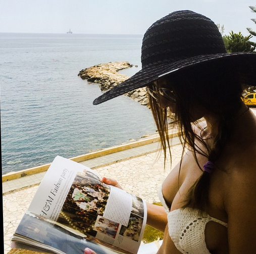 Η σημερινή εμφάνισή της με μαγιό δεν στερήθηκε σε τίποτα την chic εικόνα της. Επέλεξε ένα λευκό μπικίνι ενώ το στυλ της συμπλήρωνε το μεγάλο ψάθινο καπέλο στο κεφάλι.