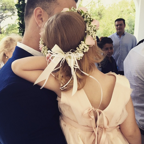Η παρουσιάστρια δεν παρέλειψε να μοιραστεί κάποιες στιγμές από τη βάφτιση του μπέμπη, ο οποίος πήρε το όνομα του πατέρα της, Θεόδωρος. Ανάμεσα στις φωτογραφίες που ανήρτησε στον προσωπικό της λογαριασμό στο Instagram είναι και ένα πολύ τρυφερό φιλί στον μπαμπά της, που έχει μεγάλη αδυναμία.